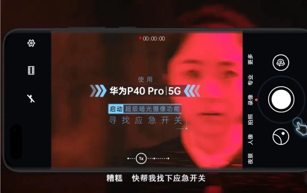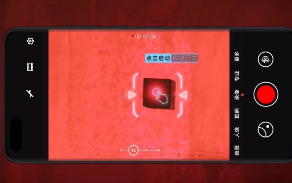 比如,第一集中谭布卡在调查过程中突遭停电,寻找应急开关就是邀请用户来完成,并在这里巧妙突出了华为 P40 Pro 的超级暗光摄像功能。