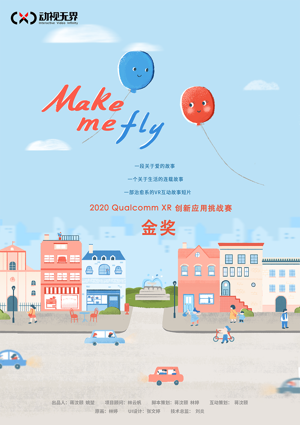 由动视无界团队制作的《Make Me Fly》是一部关于两个气球在短暂的生命里面,相见、相识、相知、生活、衰老和分离的连载VR互动故事短片。其用质朴的情节,带出生活中经典的场景,导出不同阶段的生活感悟。本次参赛呈现的是第一集《相遇》。